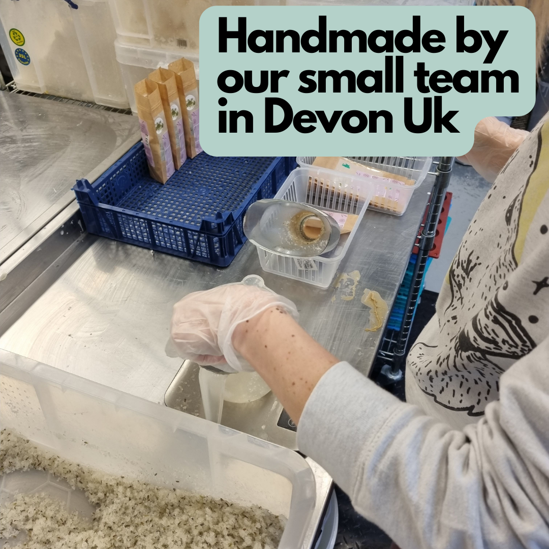 Additionally, this cellulose pouch will compost in just 10 weeks. All of our stickers are printed using compost-safe and vegan inks.