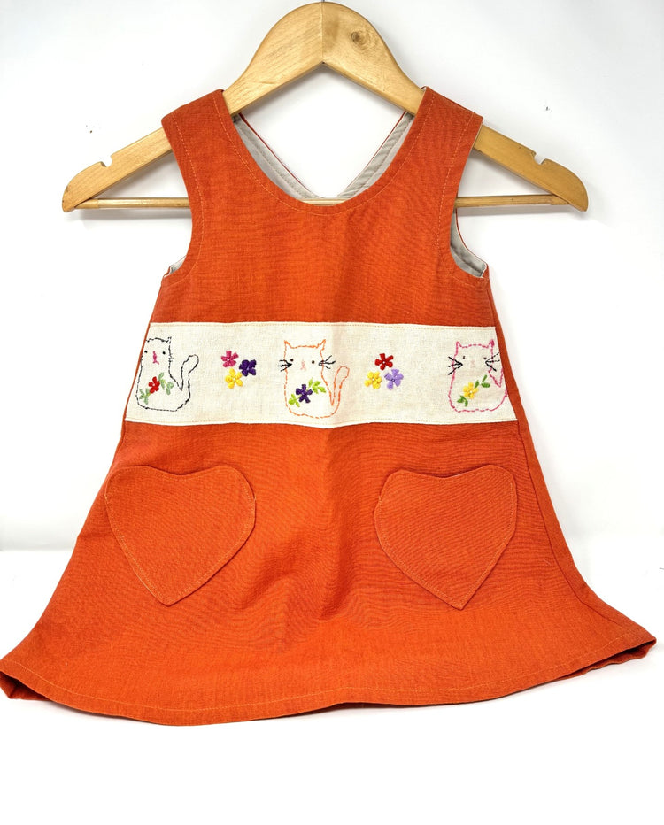 Handmade Orange Cotton Pinafore Dress