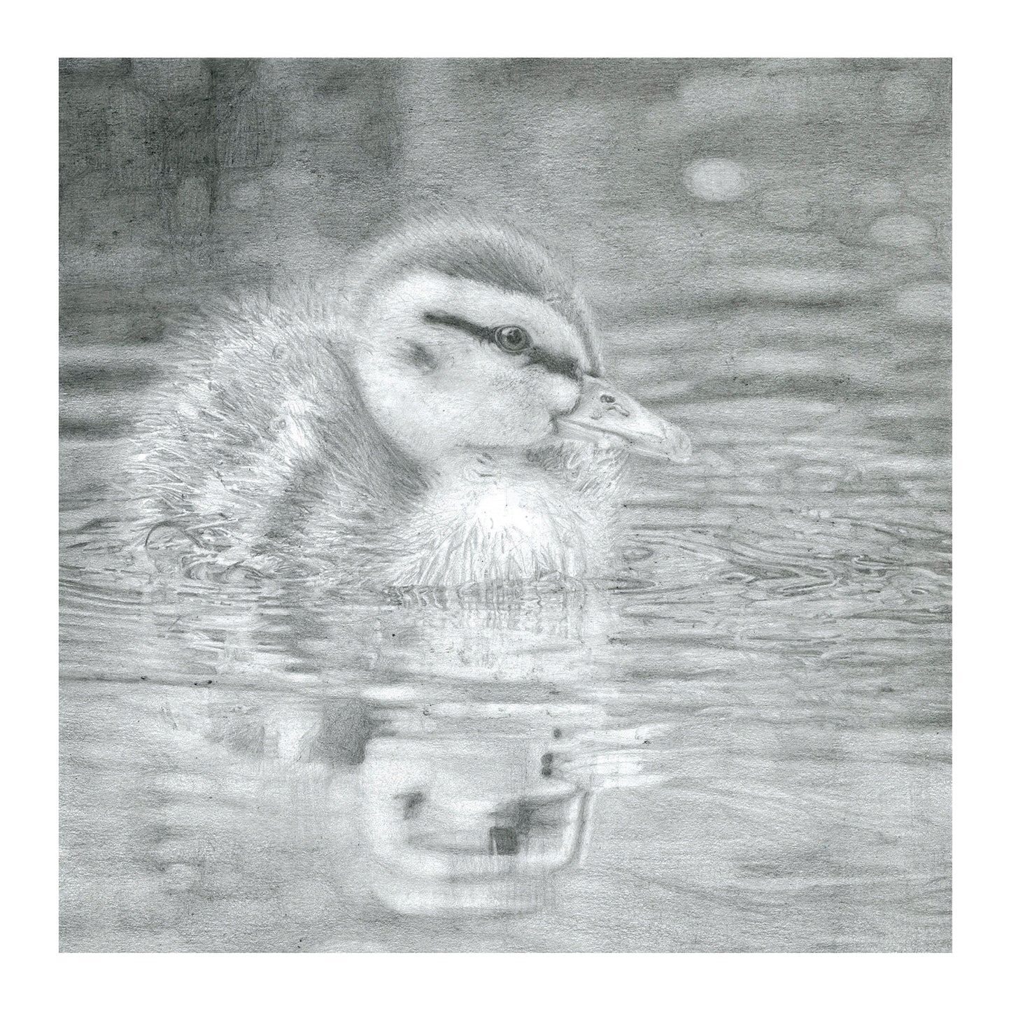 A detailed pencil sketch of a mallard duckling by Ben.