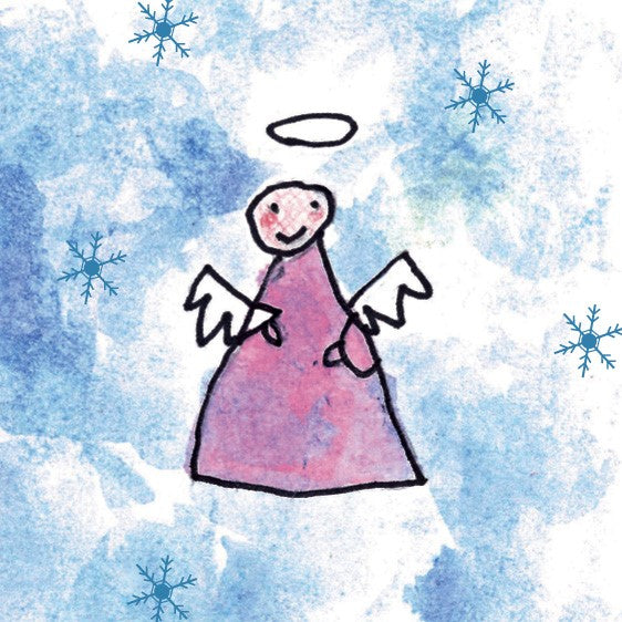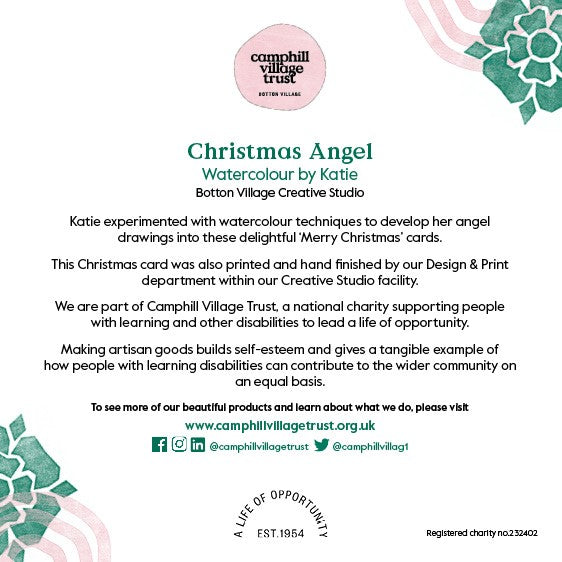 Katie experimented with watercolour techniques to develop her angel drawings into these delightful ‘Merry Christmas’ cards.