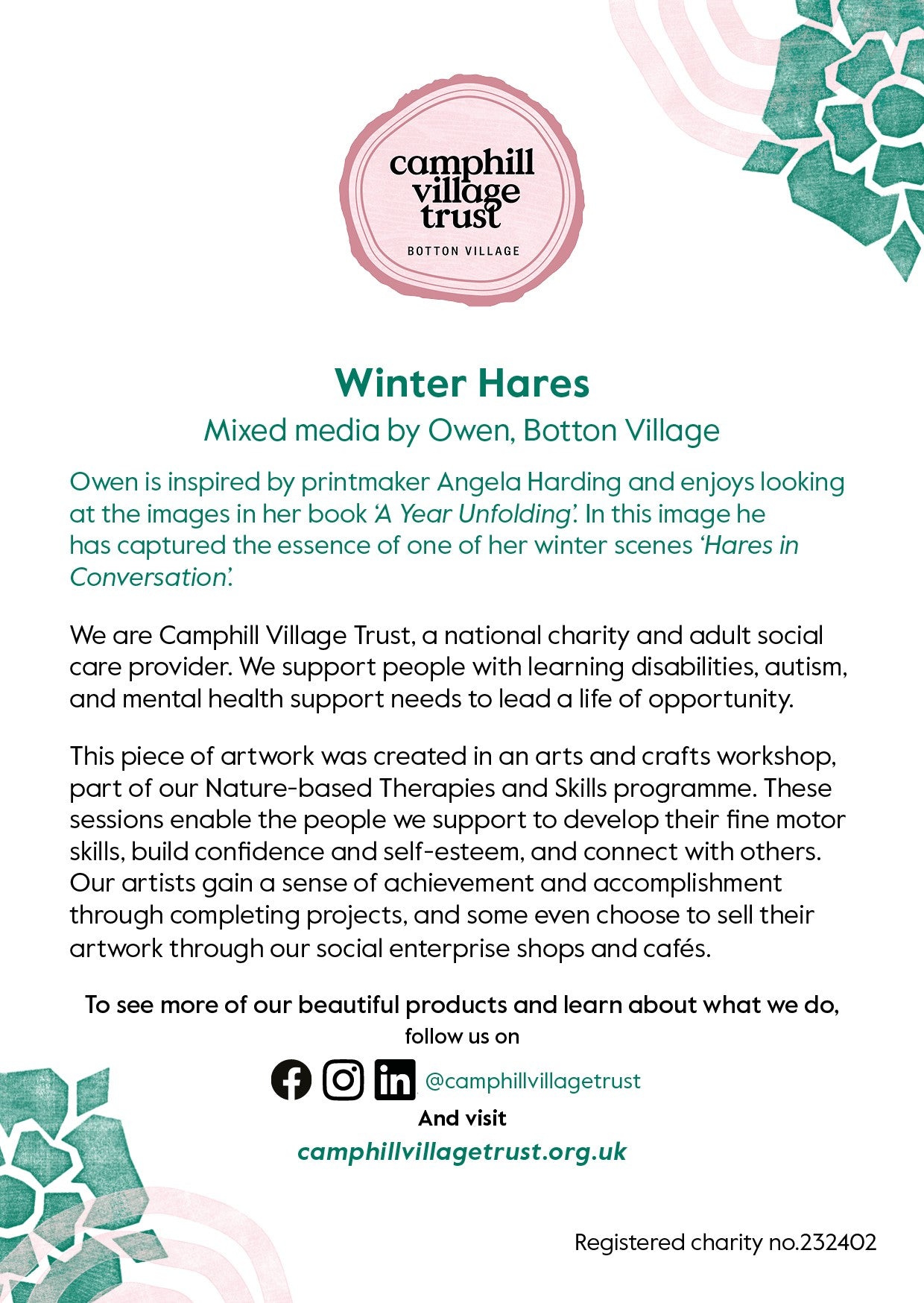 The stunning artwork used to create this greeting card was done by Owen who is one of the people we support at The Creative Studio in Botton Village.